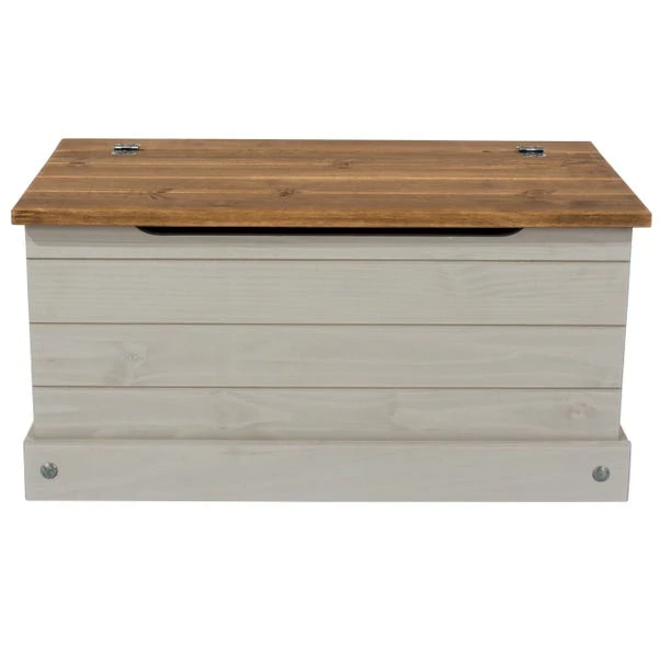 Crafted from pine wood with a simple design, the Corona Grey Storage Trunk makes a sturdy addition to the home and a fantastic storage space.