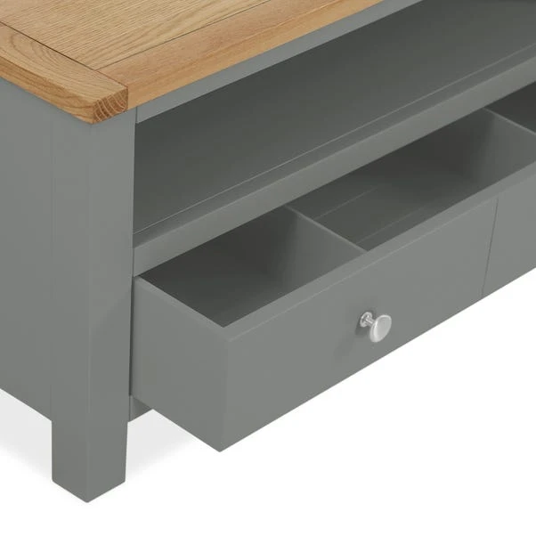 The Bromley range is ideal for adding a country classic touch to your home, whilst having the advantage and flexibility of furnishing the most compact of living spaces. Constructed from a solid pine and oak veneer, each piece features slate paint with a contrasting waxed oak finish. Supplied with smooth sliding drawers, this range comes complete with beautiful silver coloured metal handles, perfect for a range of rooms in the home.