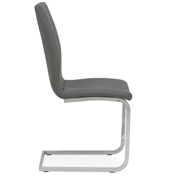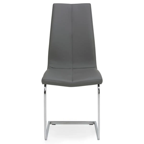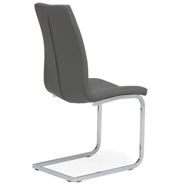 Offering a modern luxe style, the Jamison set of 2 dining chairs are upholstered in an easy-clean grey faux leather making then perfect for those with busy households who don’t want to compromise on style. These easily assembled chairs feature high shine chrome cantilever frames complete with comfortable foam-filled seats and backrests.