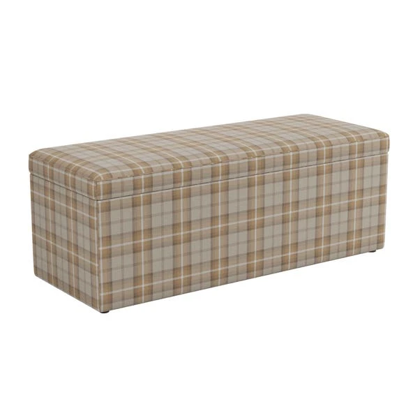 Upholstered in a soft polyester fabric, with a timeless check design. The Oswald Check Ottoman Storage Bench would make both a stylish and practical addition to any home. This storage bench is filled with foam and fibre with a strong poplar wood frame and sturdy rubberwood legs. As well as being comfortable, this storage bench is generously portioned and provides additional seating for guests or a place to put your feet up, this bench offers ample storage space, perfect for keeping your blankets, cushions or bedding.